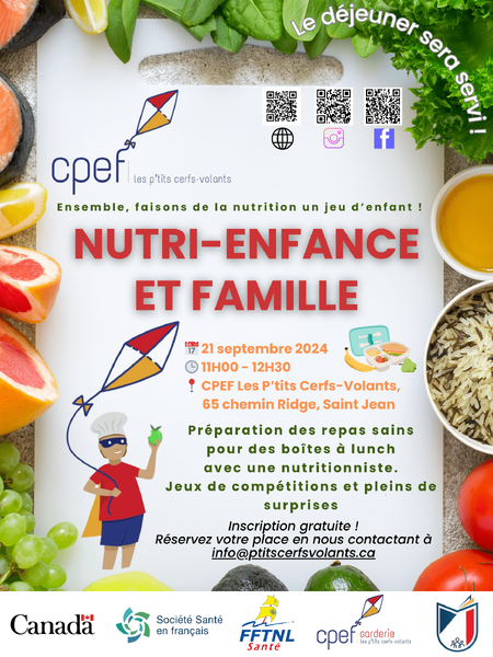 This project aims to promote a better understanding of healthy and balanced eating among Francophone families in Newfoundland and Labrador. As part of this project, we will offer interactive cooking sessions for parents and children, free consultations with a nutritionist, and many other exciting activities.
