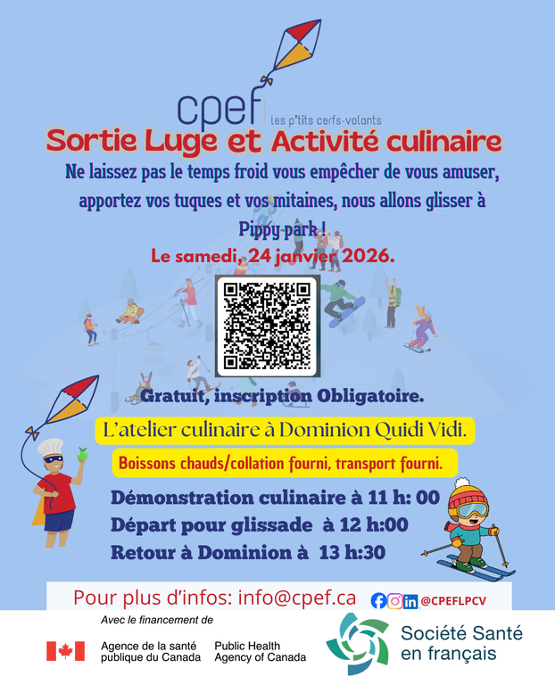 Le CPEF invite chaleureusement les enfants et leurs familles à venir profiter d'une journée hivernale remplie de plaisir, de glissades et de gourmandises !